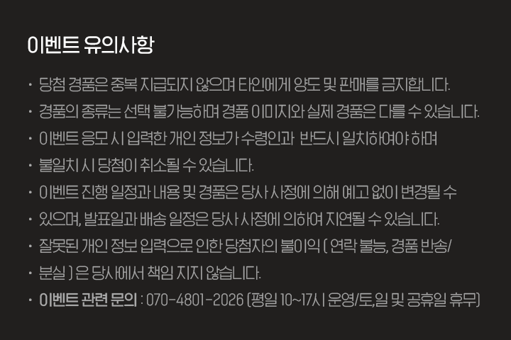 - 수집 및 이용목적 : 이벤트 당첨자 경품 배송