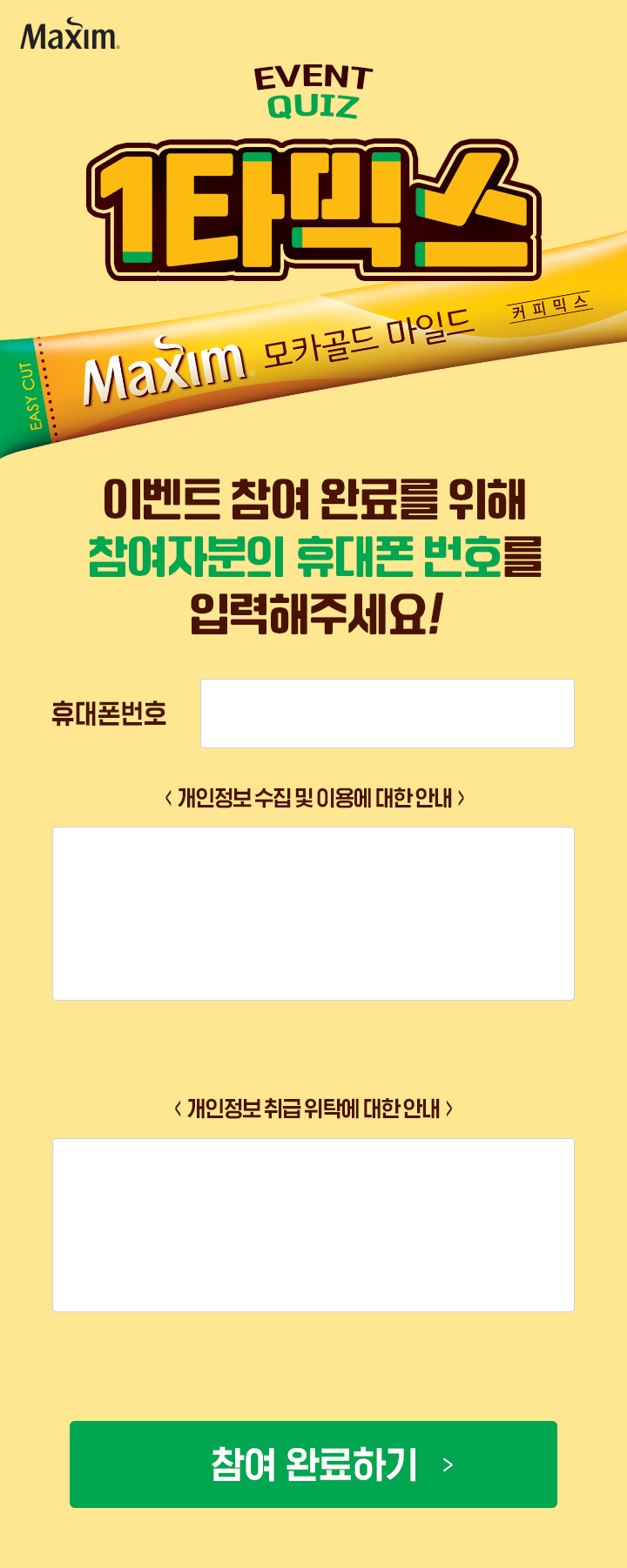 * 고객님께서는 개인정보 수집 및 이용동의에 거부할 수 있습니다. 단, 거부하실 경우 경품 수령이 불가합니다.